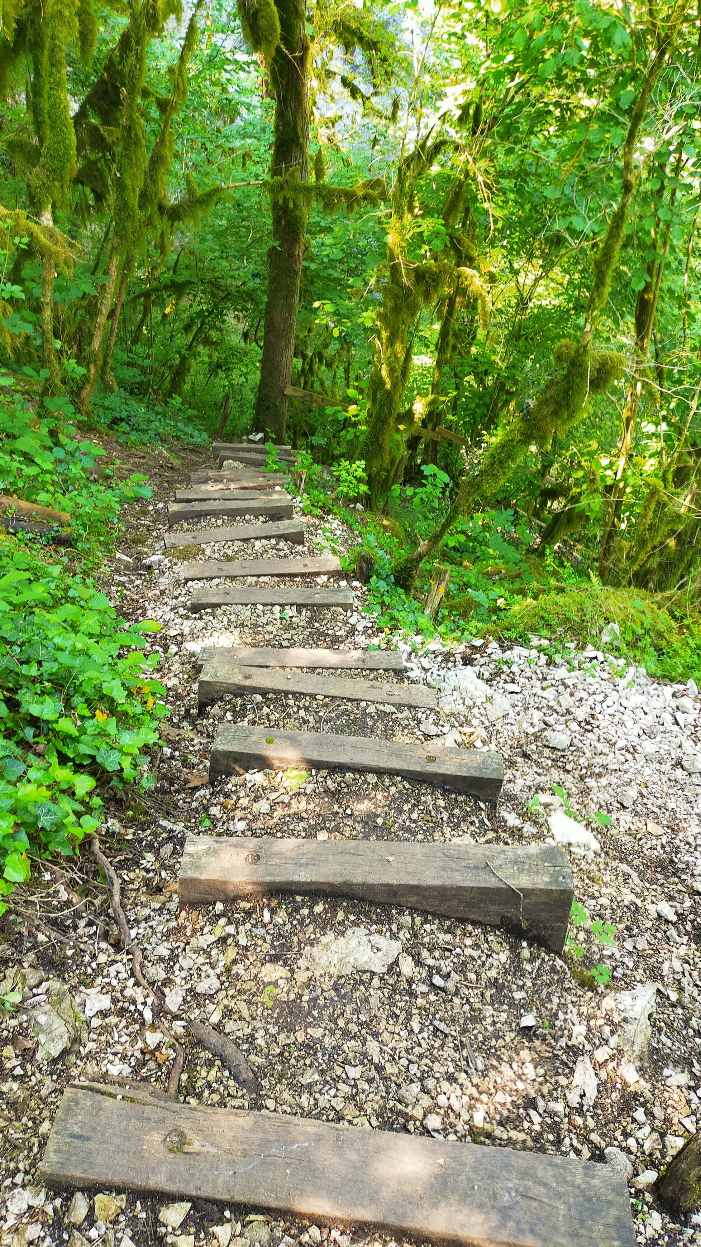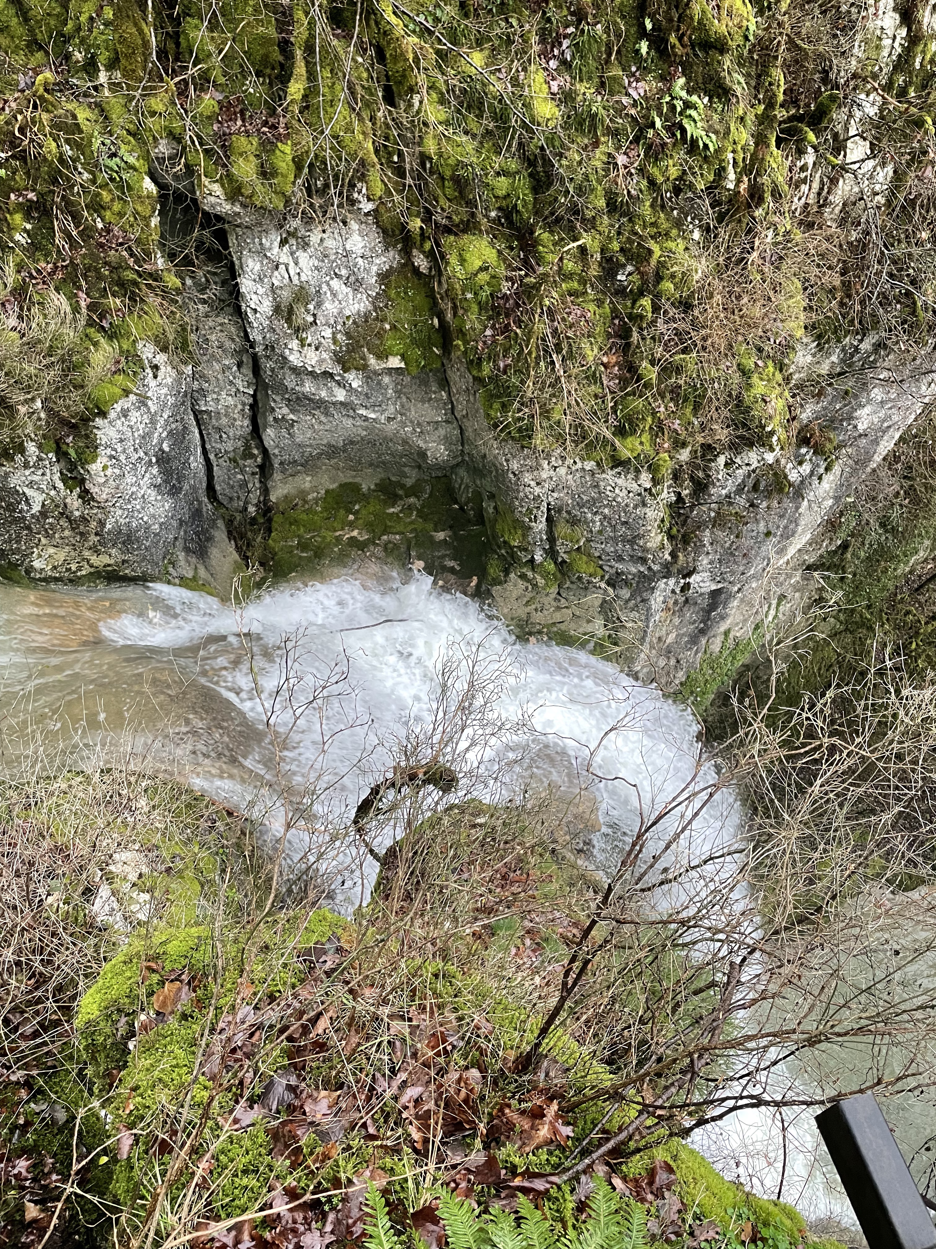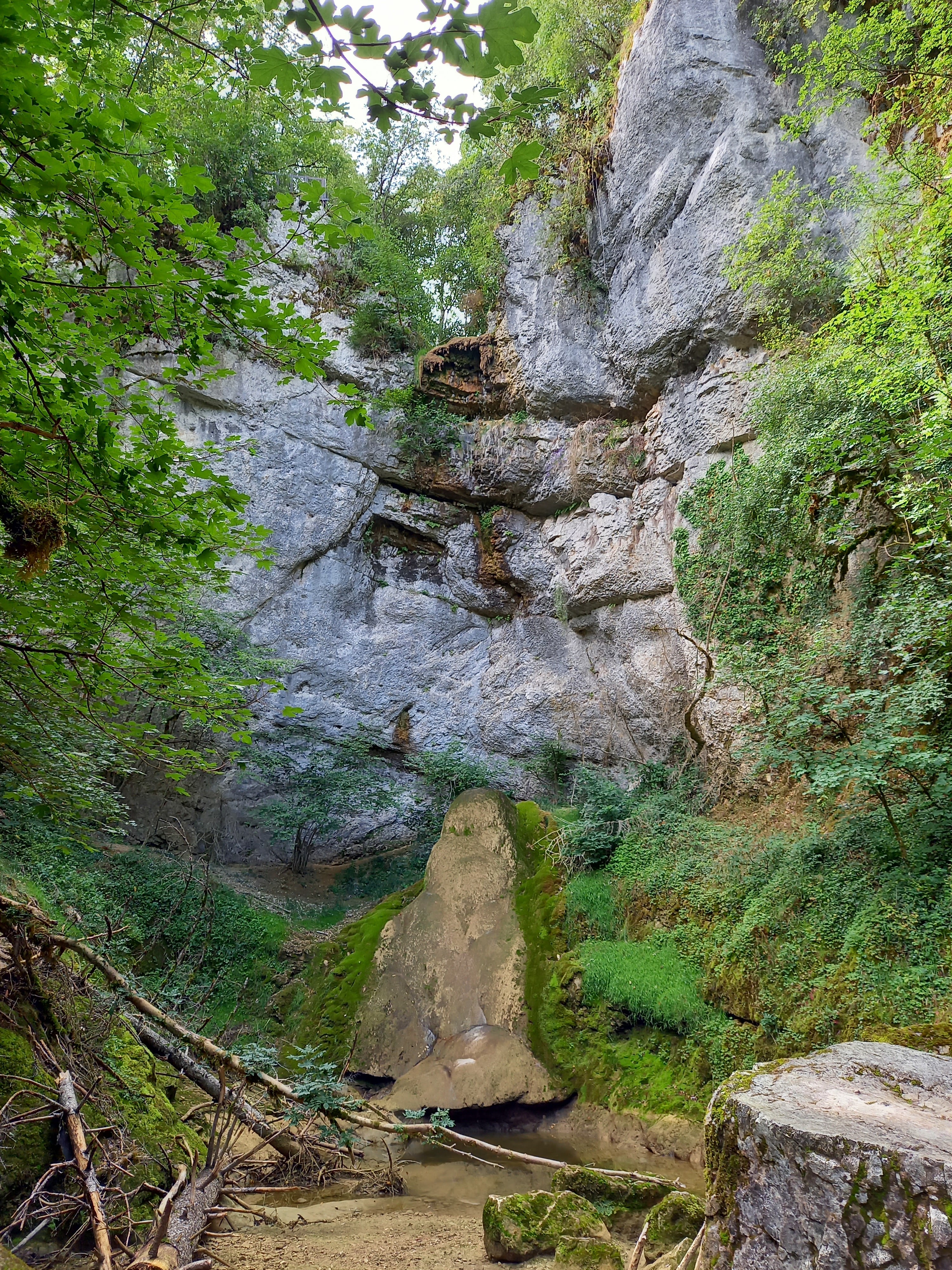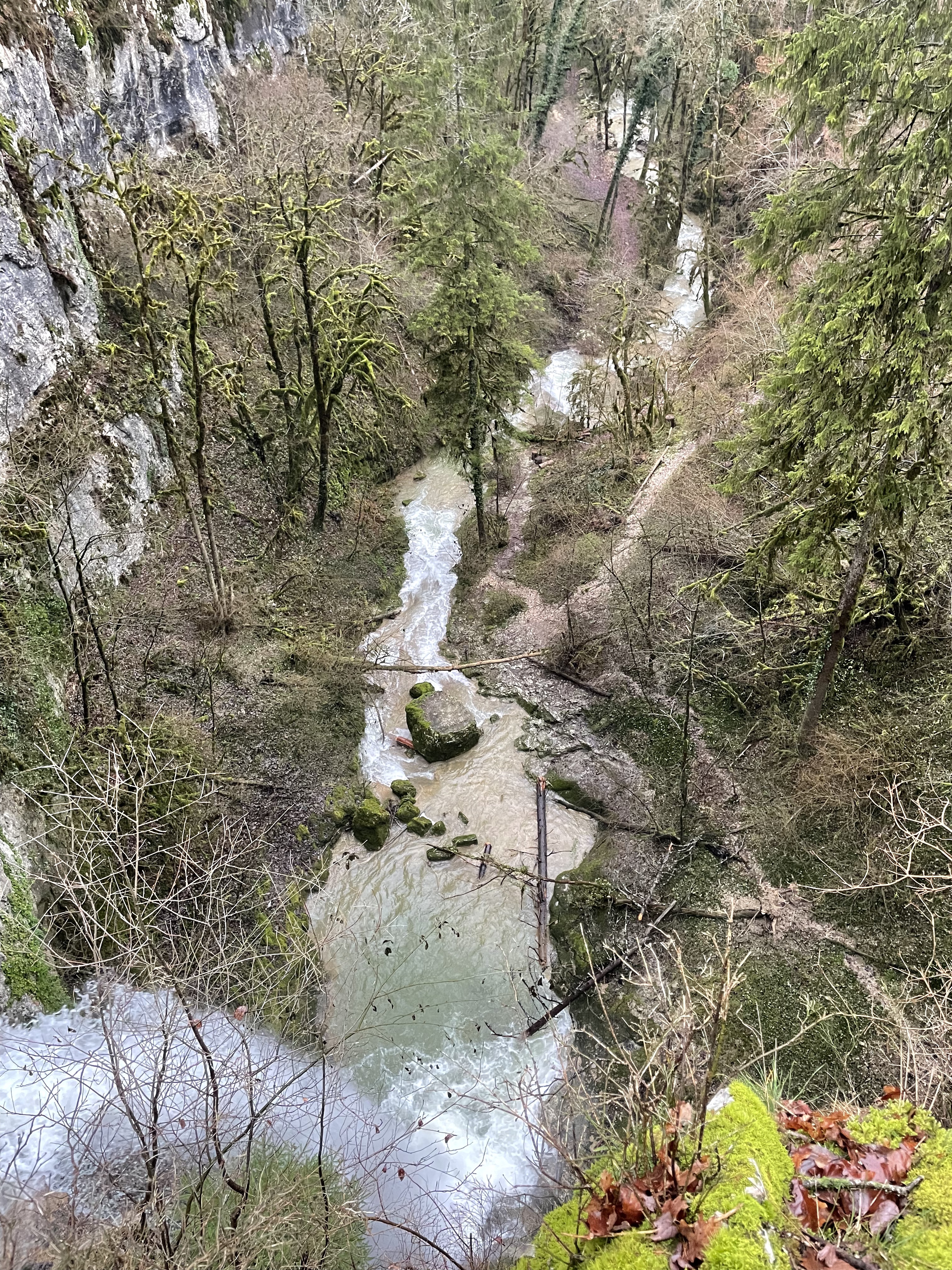 Pas d'eau à cette époque de l'année mais l'endroit est vraiment magnifique. Avec tous les arbres couverts de mousse, le vieux pont de pierre au-dessus du cayon, on a l'impression que des elfes vont soudainement sauter devant vous.