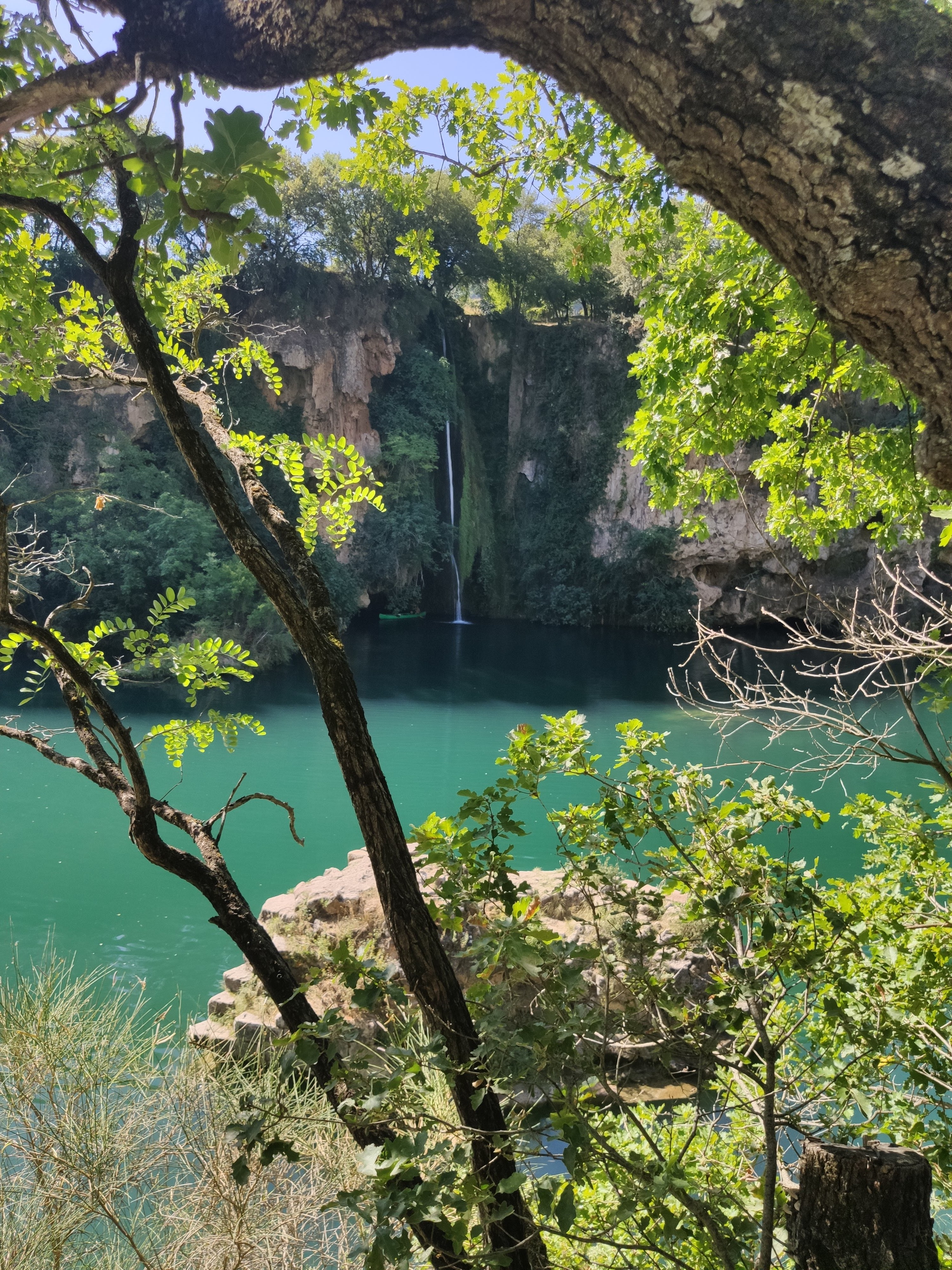 Magnifique cascade avec un accès par un escalier aménagé récemment. Possibilité de poser sa serviette sur les rochers et de se baigner. Il y a un gros rocher pour sauter dans l’eau. Très beau cadre. Superbe endroit. Pour accéder à la cascade, il ne faut pas suivre le point google maps mais aller en face en traversant un pont. Pour se baigner il faut descendre par l'escalier aménagé, l'escaladé et descendre par la grosse corde. Sinon vous y avez accès à partir de la base nautique en louant un canoé ou pédalo