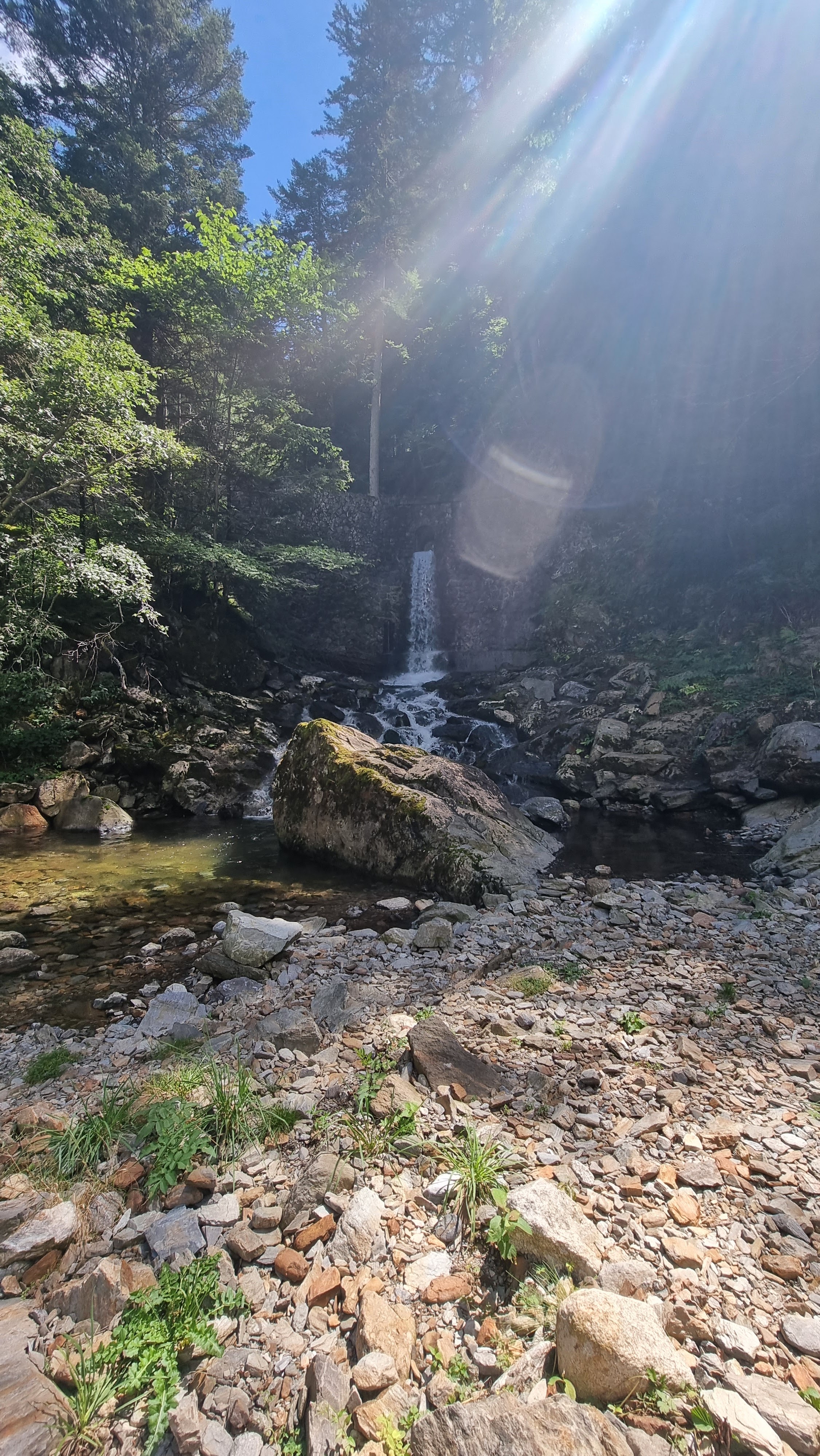 Il se trouve à une demi-heure du parking, il y a une petite montée mais il est facilement accessible. En juin, il y a un grand débit