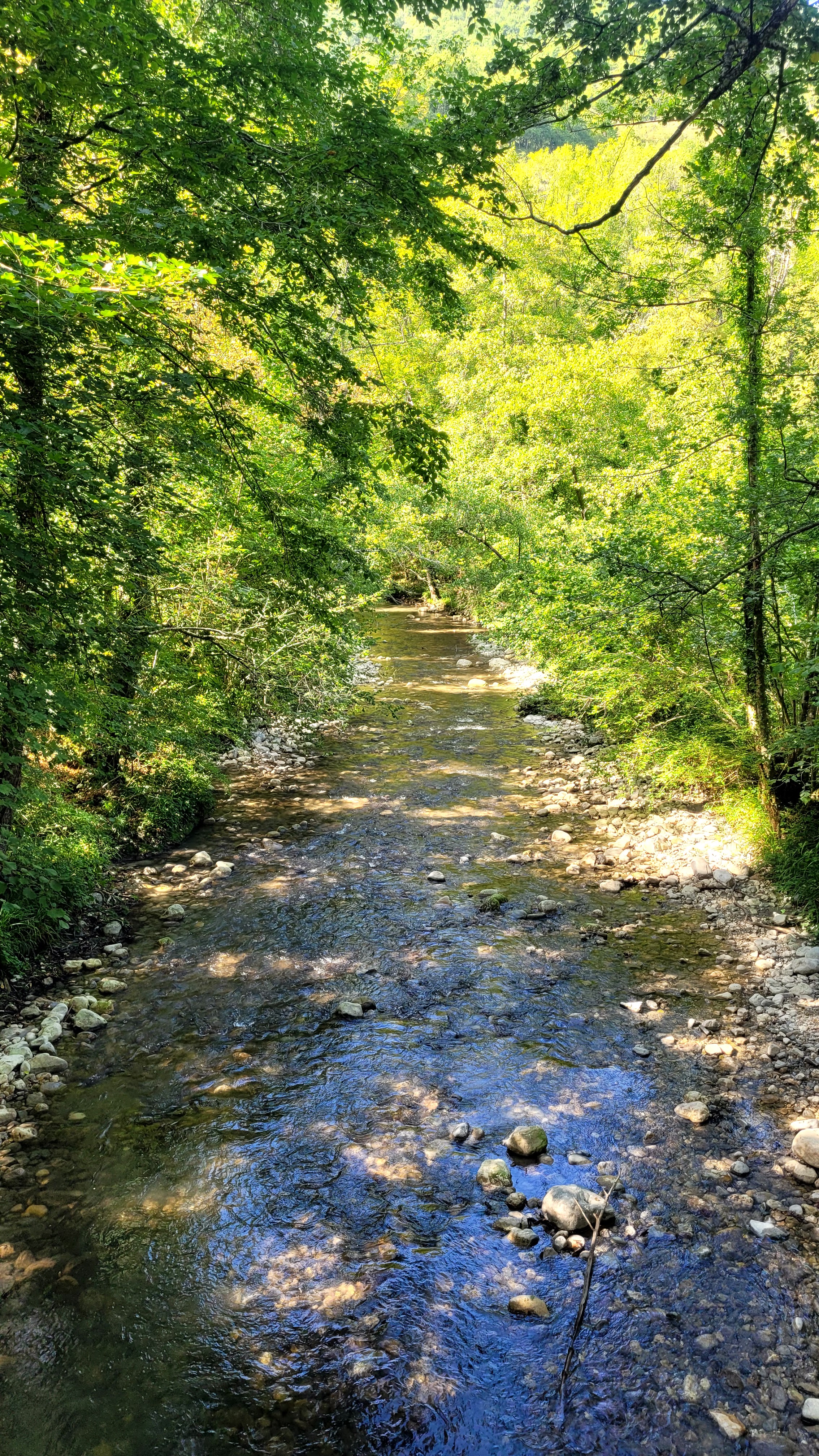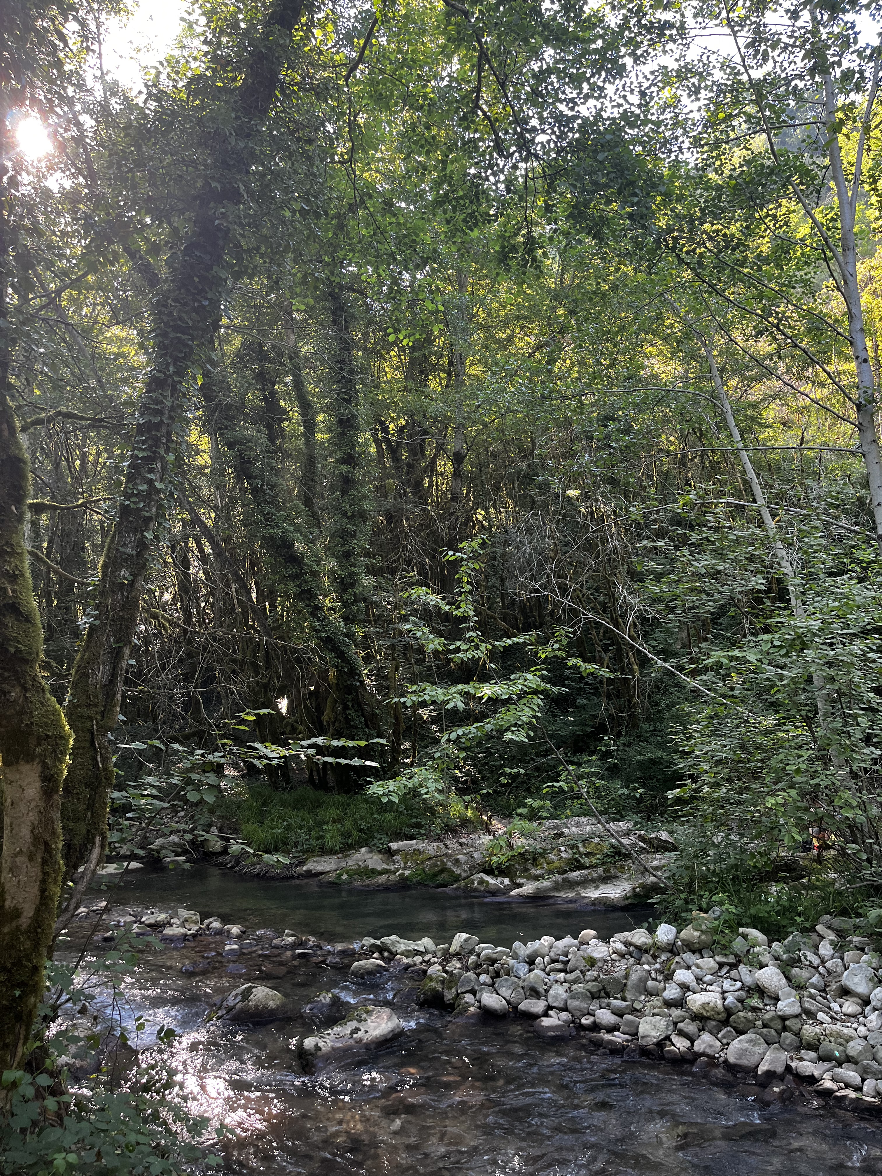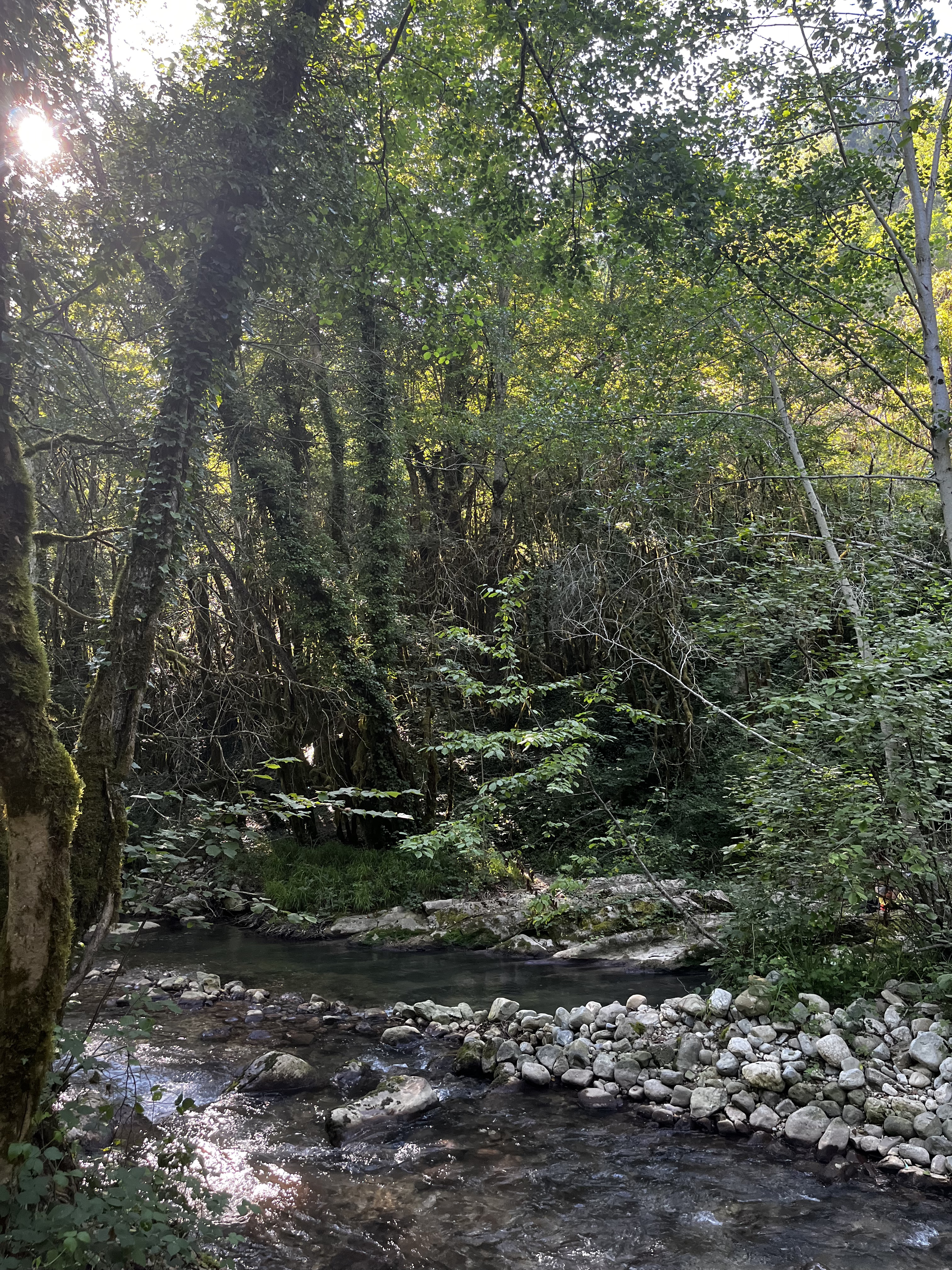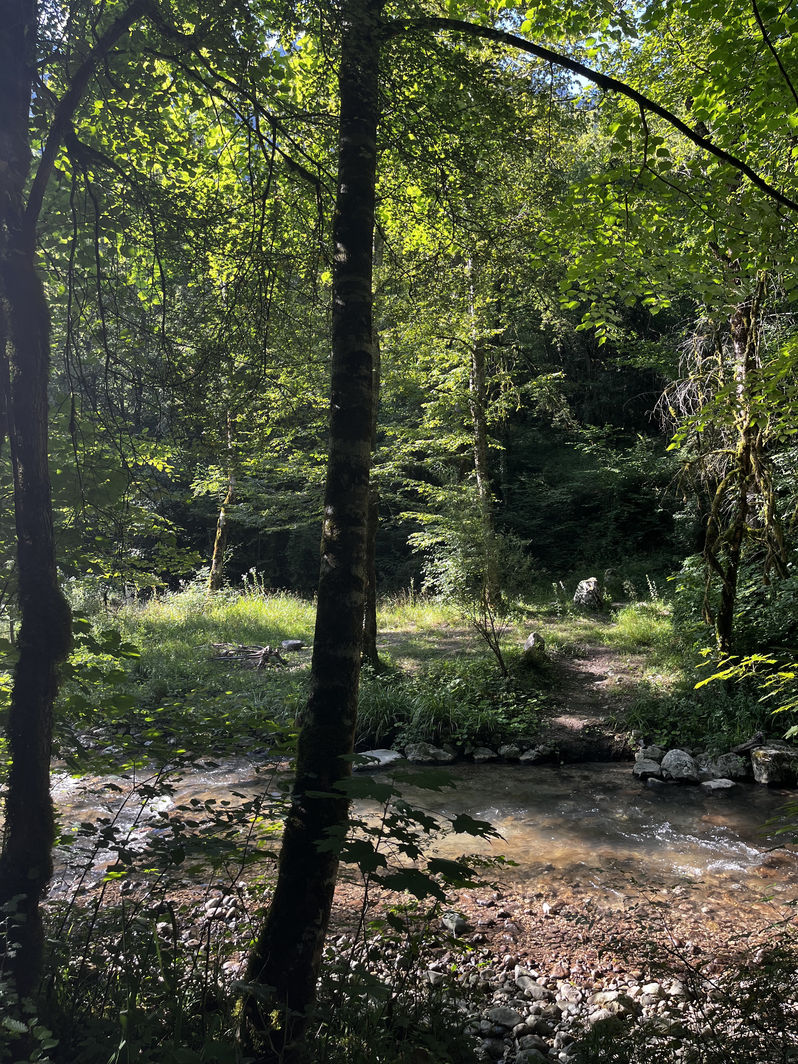 Lieu enchanteur reposant frais et authentique à faire absolument attention place de stationnement limité suivant la fréquentation chemin de rando très facile en contre bas sur la gauche en descendant la rivière. Environ 600m